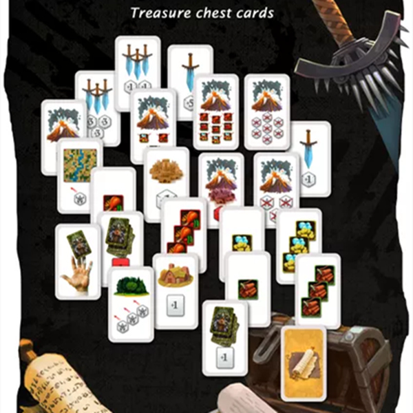 Battle of GOGでは、ボックスの下部がゲームボードとして使用されます。ゲームのマップはさまざまな組み合わせで組み立てることができるため、ゲームセッションごとに異なる方法でプレイできるため、ほぼ無制限の再生が可能です。非常に多くの要因が関係しているため、最も豊富なマップエリアに3つの都市を設定しても、アビリティカードとトレジャーカードが危機的な状況で違いを生む可能性があるため、勝利を保証することはできません。